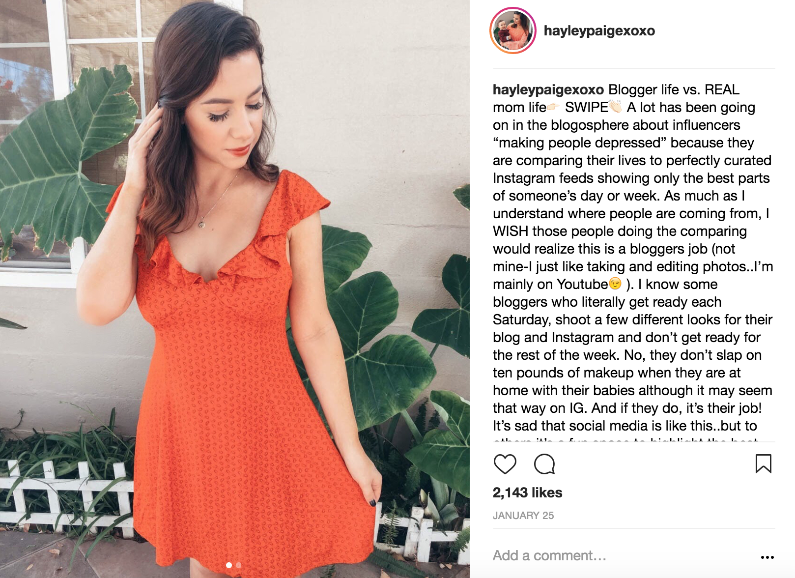 When I was looking for Instagram photos for this post, I knew I HAD to use this one because it makes me almost laugh out loud. First off, what you don’t see, are the sweats I pushed down to my ankles because it was freezing that day at my parents house, but this picture was for a partnership with a brand so that’s why I had to wear this dress! I hid my sweats for a gif my Mom took in our backyard and put them right back on afterwards. The funny part was that I accidentally sent the full sized gif without cropping it to the brand. My contact laughed so hard! Embarrassing! Oh well, anything for the picture;)