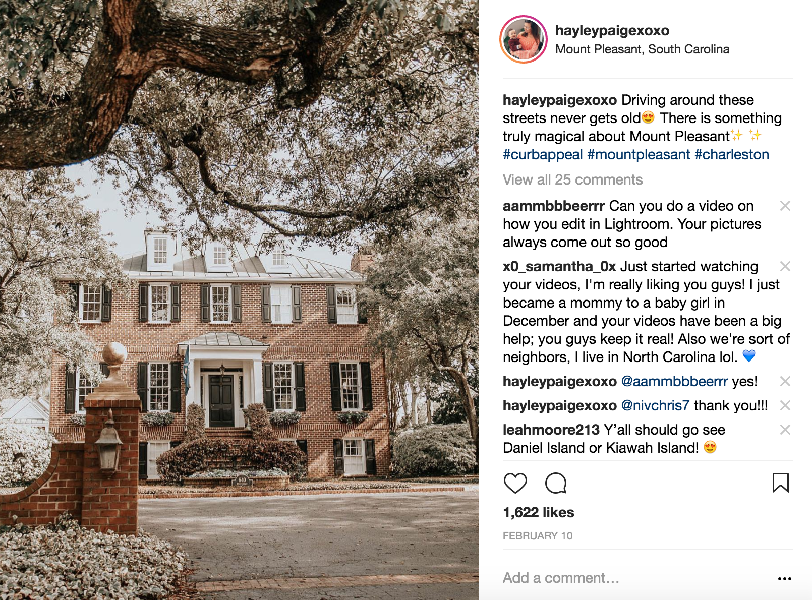 I literally took this picture out of the window of a moving car as we were driving through the streets of Old Mount Pleasant. How picturesque! I got lucky with this one. The houses are to die for here. It never gets old.