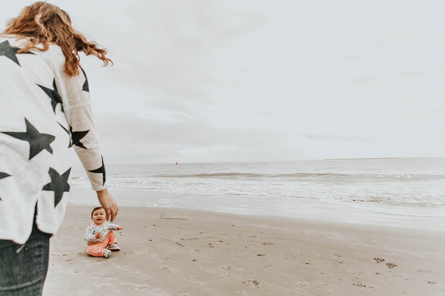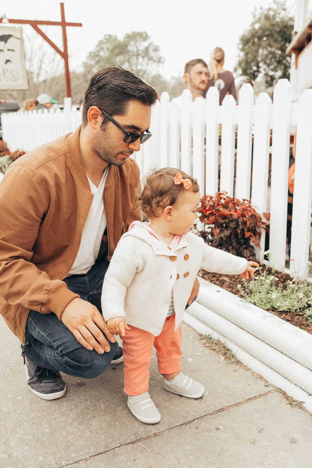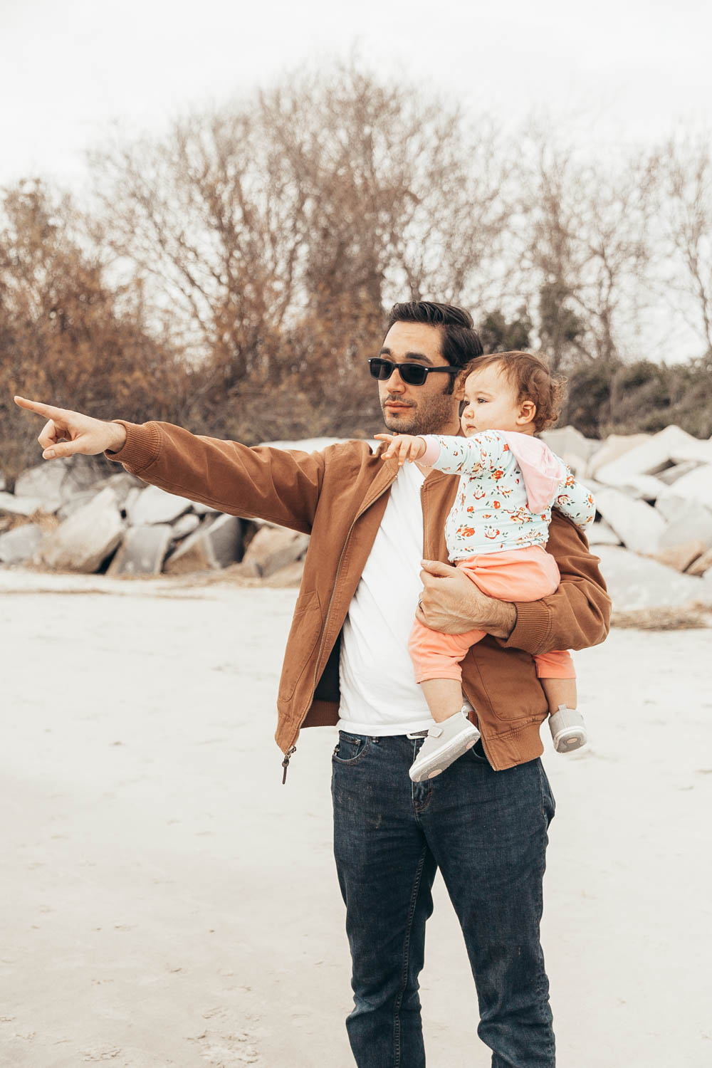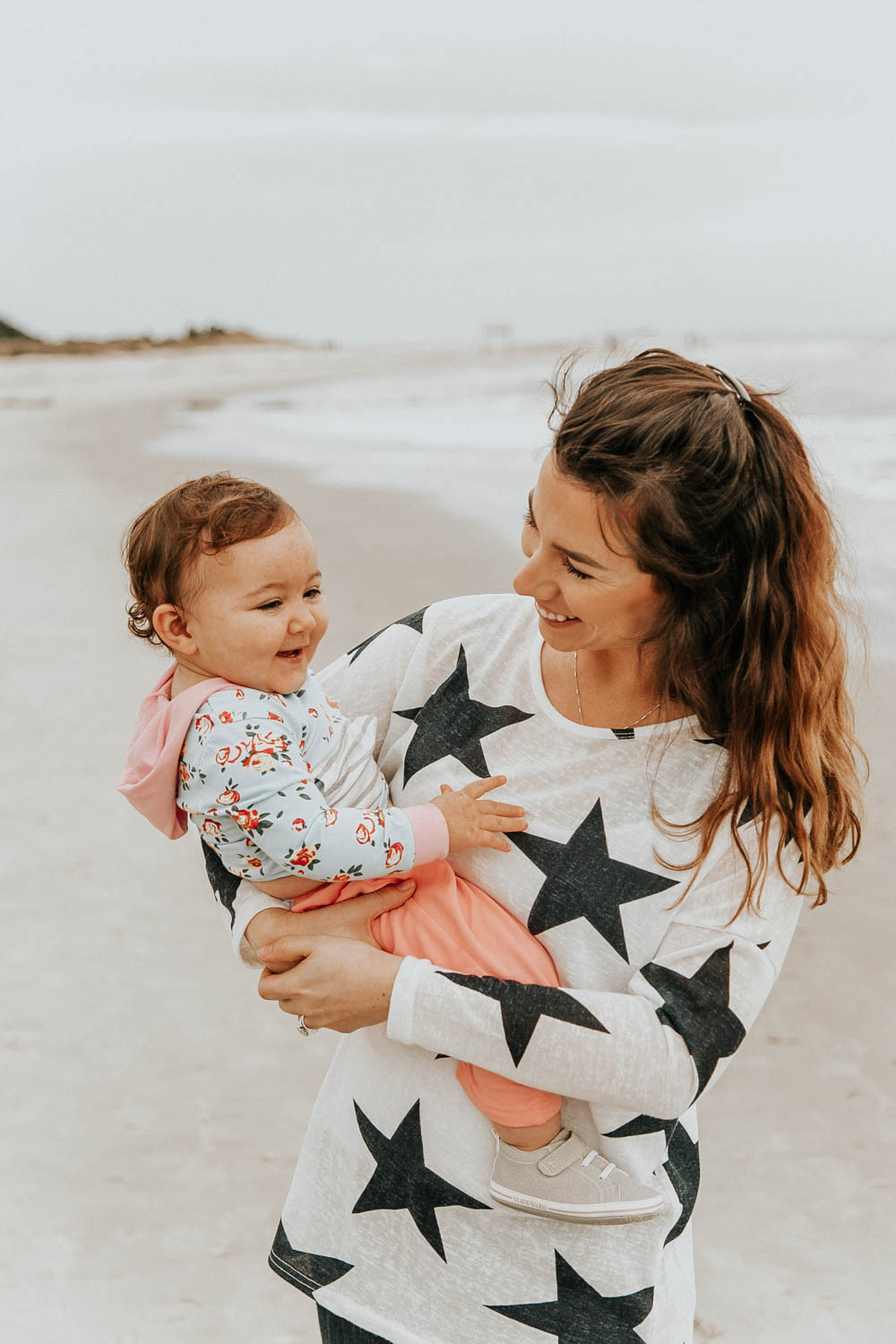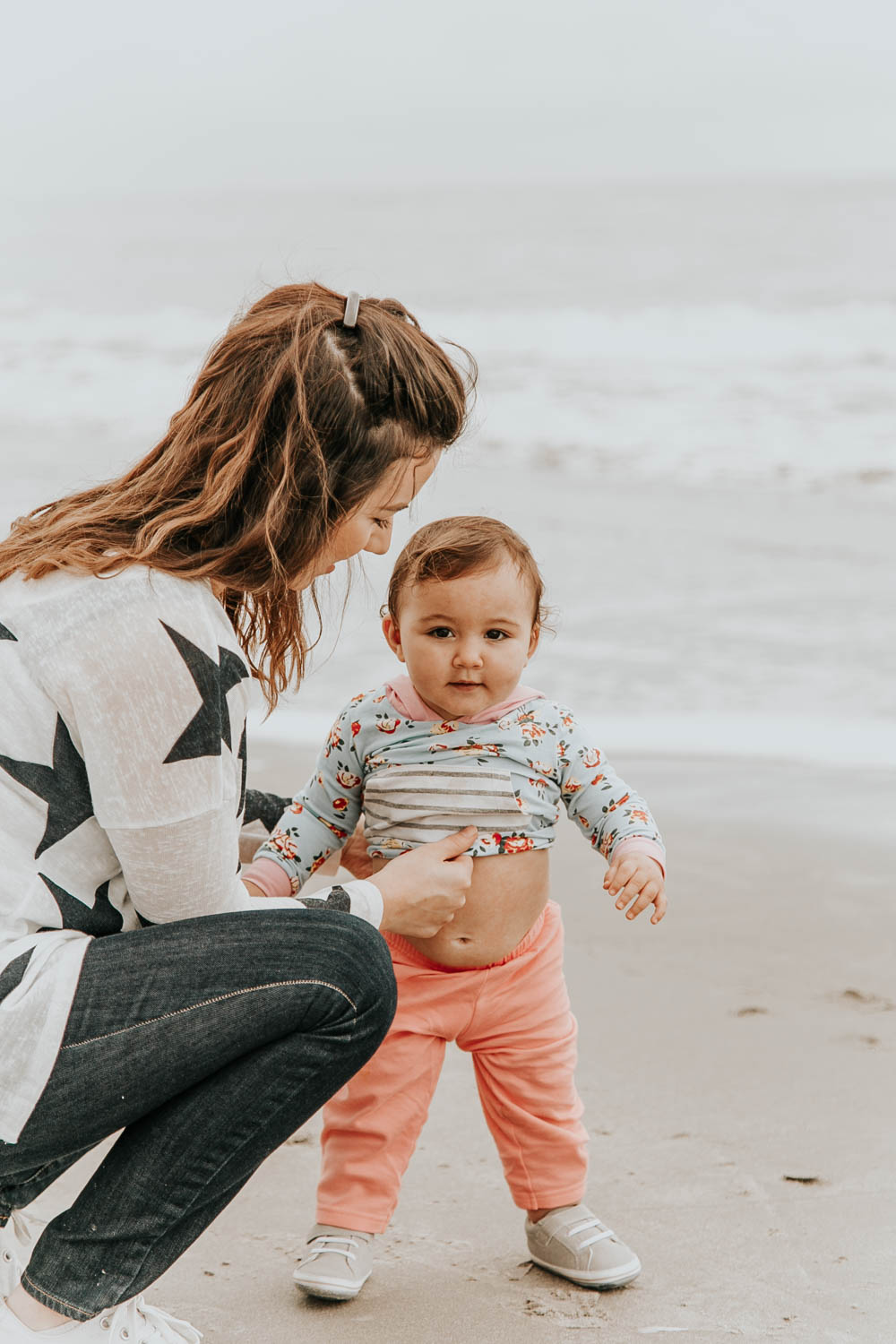 I love how you can eat lunch or dinner outside on screened in porches here. So Southern! I know I say that a lot, but we are just in love with the Southern culture and the locals may or may not realize it, but there truly is a culture to this town that fits our personalities so well. We’ve both always felt we never fit in well in California. We’re not sure if it was because of the interests of the people living there or the fast paced lifestyles, but we love how laid back everyone is here and they are just SO nice!^^Annabelle insists on standing on her own now! She’s getting to be such a big girl. The people in Charleston truly are some of the kindest I’ve ever met in my life. I feel like a broken record, but it’s so true. Everywhere we go people of all ages are interested in our life and seem to always strike up a conversation. We chatted with the loveliest couple sitting next to us all about where they were from, how cute Annabelle is (of course), and they gave us suggestions on things to do in the area. That would have never happened back in LA. People always stayed to themselves and hardly ever engaged with each other. It’s so refreshing to be surrounded by such nice people! I don’t think I’ll ever get over it.^^We need to buy bigger clothes for her! Her tops always seem to ride up lol. These pics were taken right on the beach and this day was so tranquil. There was hardly anyone on the beach and it felt as if we had the entire beach to ourselves. ^^Hating when I hold her hands, but she kept trying to eat the sand… Pointing at birds of course! Her not realizing she’s alone so we can snap a pic… Crying for me to come get her! lol! Awkward selfies that never turn out;)