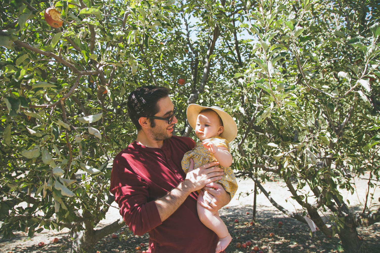 Alright you guys, long gone are the days when I try to be a picture-perfect blogger and pretended every set of images were easily shot and we had the most magical time taking them. I’d like to think some of my charm comes from being a real human being in this cloud of perfect Mommy bloggers with impeccably curated feeds and images on social media (hopefully;) Well, this particular day was CRAY. First off, apple picking sounds like the cutest fall festive idea, right? Eh…not so much with a baby. We try not to let having a baby dictate everything we do, but sometimes it’s inevitable. Apple picking is a lot more strenuous than people let on. We went to Riley’s Farm in Oak Glen, CA and it seemed like the most magical place! Little did we know, it was pretty big, involved lots of dirt and even more hills (remind me to buy a jogging stroller already!). It was sooo hot and I forgot Annabelle’s baby sunscreen so I was trying to cover her up the entire time so she didn’t get burned. Also, picking apples isn’t actually the most glamorous thing to do. So when you see these cute girls on Instagram dressed in plaid and picking apples in loafers, if they are in CA they are probably sweating their butts off and paying $50 for a bucket of apples..no joke!