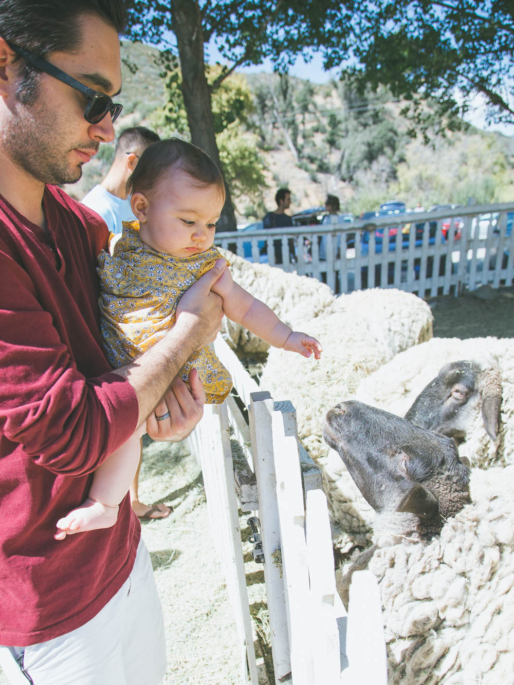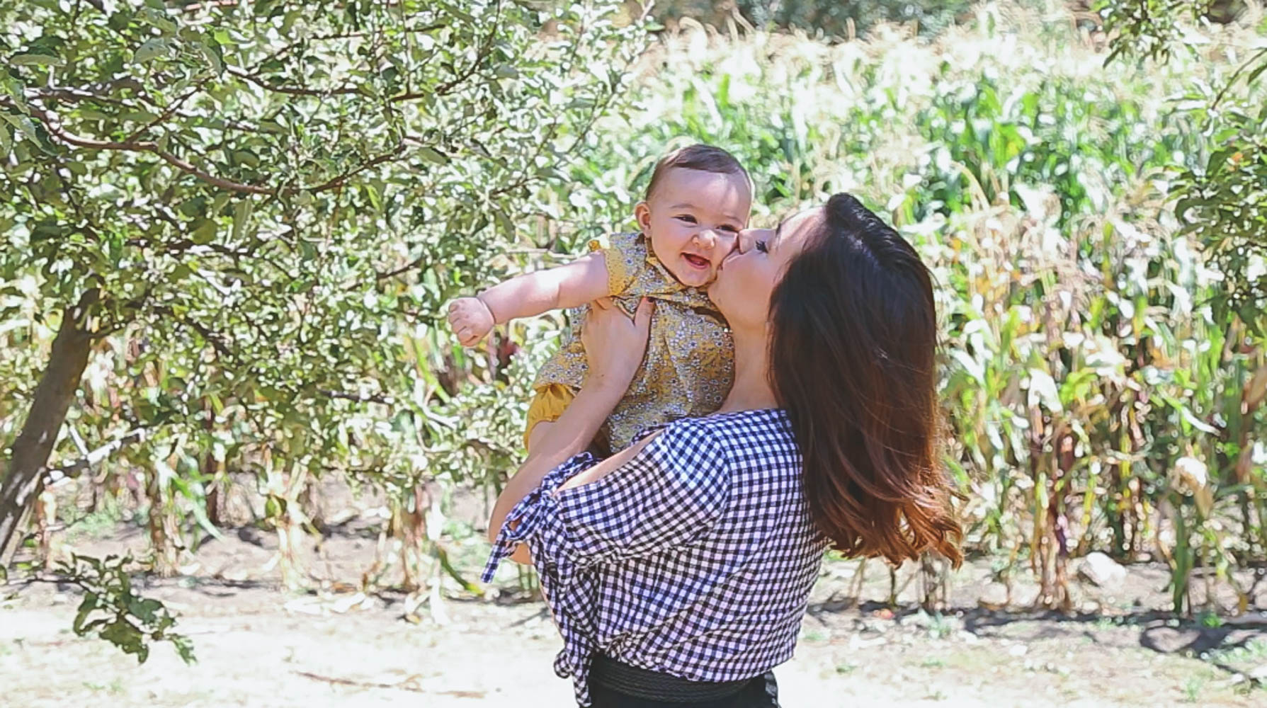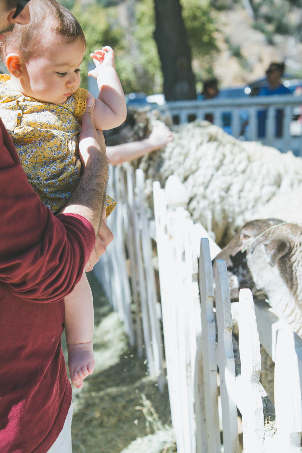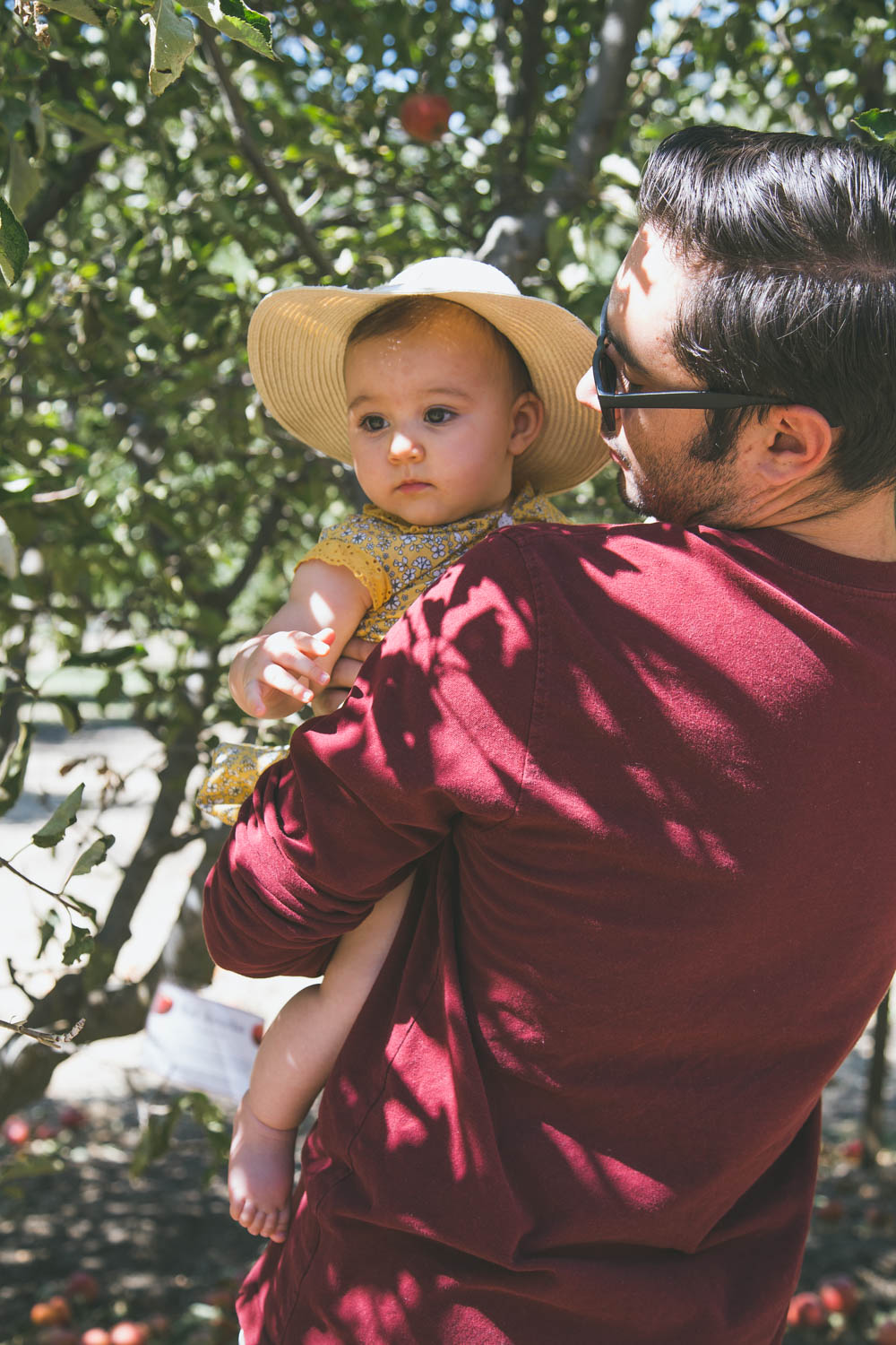 Alright you guys, long gone are the days when I try to be a picture-perfect blogger and pretended every set of images were easily shot and we had the most magical time taking them. I’d like to think some of my charm comes from being a real human being in this cloud of perfect Mommy bloggers with impeccably curated feeds and images on social media (hopefully;) Well, this particular day was CRAY. First off, apple picking sounds like the cutest fall festive idea, right? Eh…not so much with a baby. We try not to let having a baby dictate everything we do, but sometimes it’s inevitable. Apple picking is a lot more strenuous than people let on. We went to Riley’s Farm in Oak Glen, CA and it seemed like the most magical place! Little did we know, it was pretty big, involved lots of dirt and even more hills (remind me to buy a jogging stroller already!). It was sooo hot and I forgot Annabelle’s baby sunscreen so I was trying to cover her up the entire time so she didn’t get burned. Also, picking apples isn’t actually the most glamorous thing to do. So when you see these cute girls on Instagram dressed in plaid and picking apples in loafers, if they are in CA they are probably sweating their butts off and paying $50 for a bucket of apples..no joke!