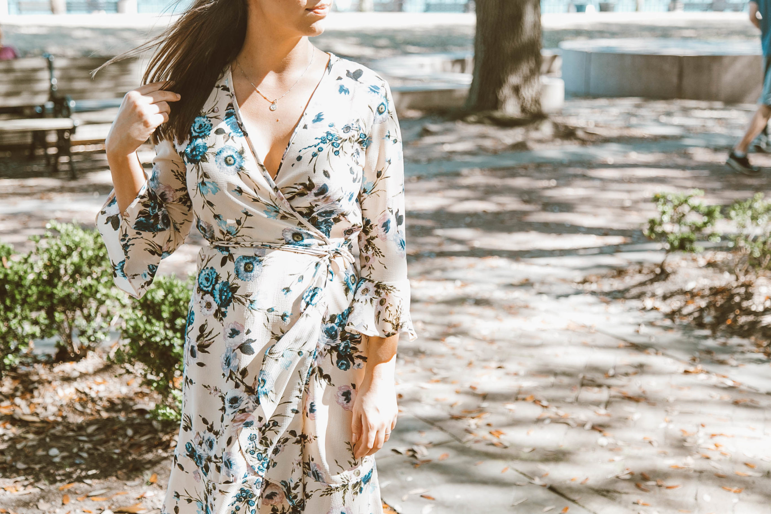 I put maternity in quotes because they have non-maternity items on their site even though the word “maternity” is in their name. I swear by this site! You probably already know my love of florals and they have a ton of pretty patterned pieces for spring and summer. I got the dress I’m wearing in these pictures from their site and it fits perfectly (size medium)!