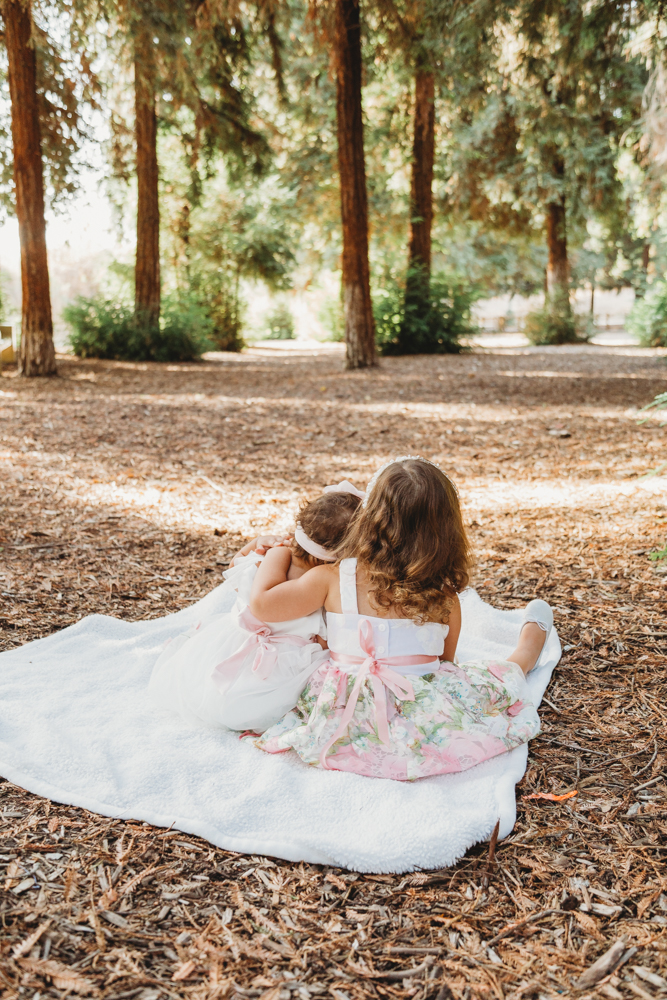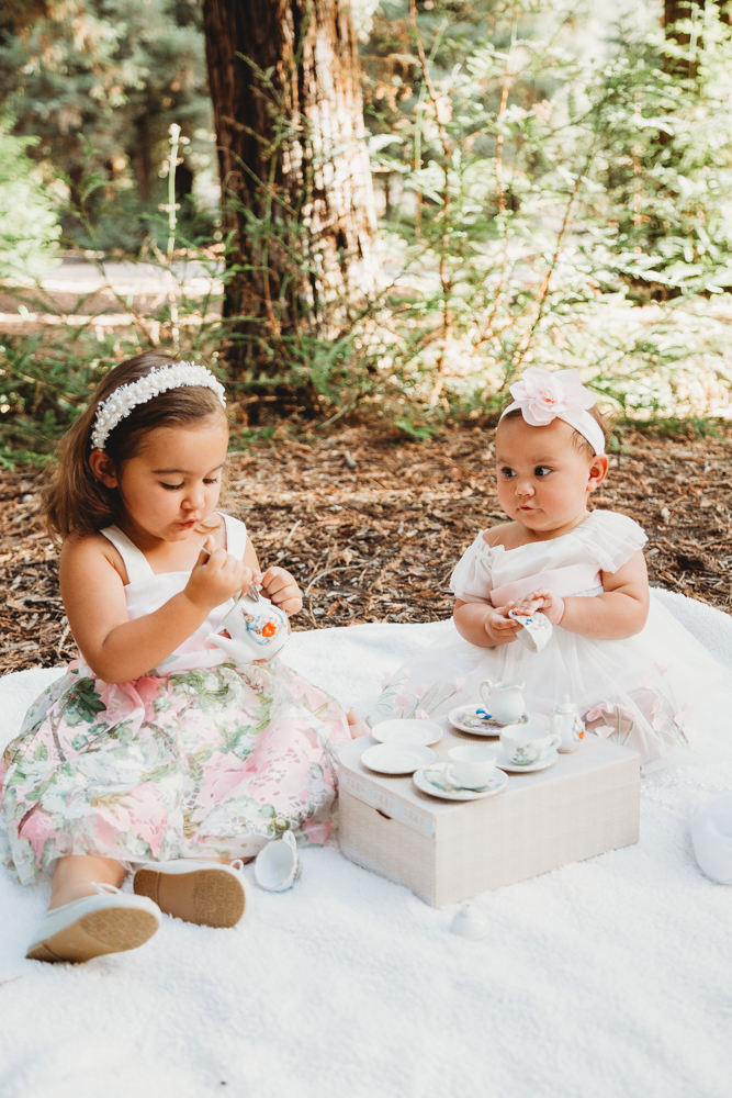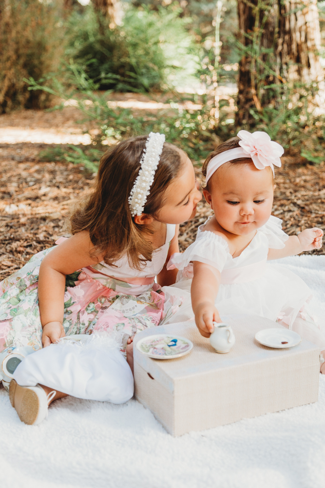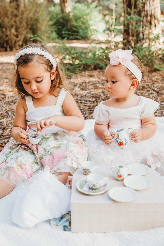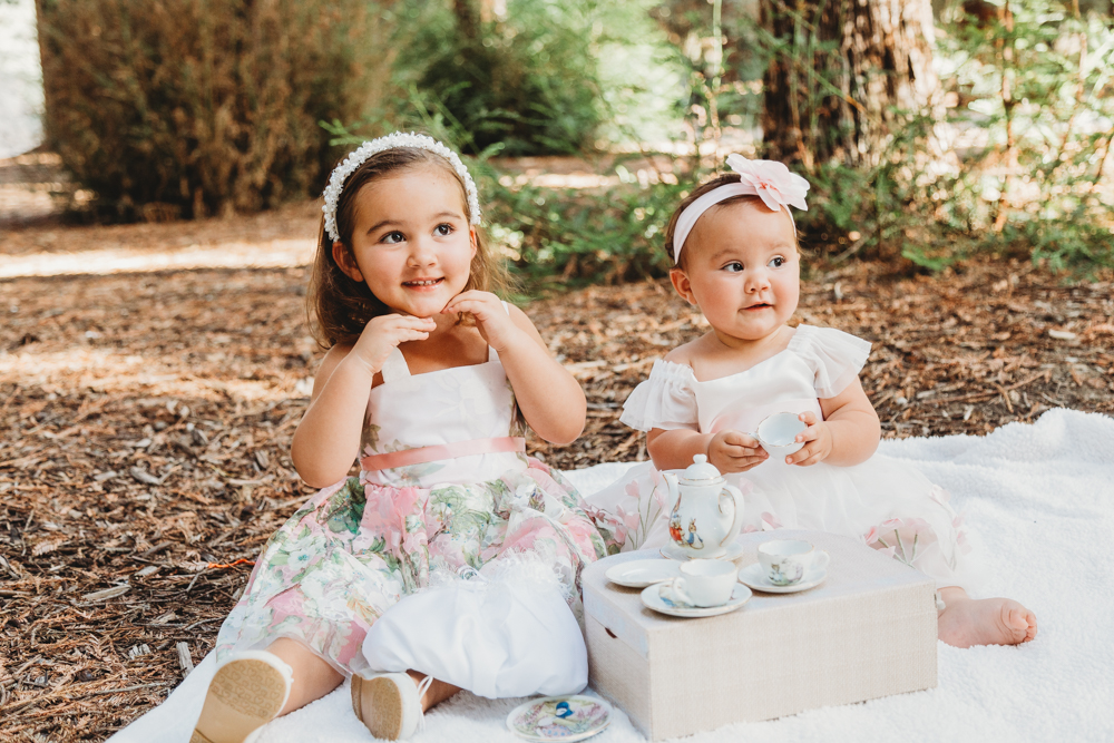 Instead of stressing this shoot and jam packing 10 things to do in one day, we focused on having a whimsical tea party in a nearby forest, which ended up being so fun! Annabelle was so excited to wear her new party dress, headband, and shoes from Chasing Fireflies and Scarlett had one to compliment! Chasing Fireflies is the perfect place to find party dresses, play clothes and one of a kind costumes. They also have costumes for imaginative dress-up play (not to mention Halloween!) for babies, kids and adults as well as an affordable clothing collection for little ones under the Chasing Fireflies brand. Check it out here!