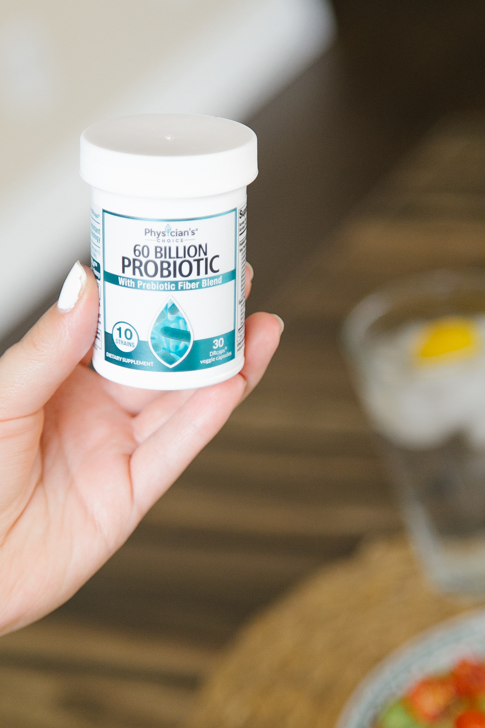 Change #1: I started taking regular supplements. I’ve loved Physician’s Choice for the last year (it’s where I get my Collagen Peptides for glowy skin!) because they are a reputable and high quality healthcare brand that only sells the best. I was looking to get a daily probiotic to help with immunity and digestive health and chose theirs because it has 60 billion live cultures in every serving, is organic/Non GMO, has 10 strains rather than 1-2 like most brands to promote bacterial balance in the gut, and a delated veggie capsule to resist stomach acid that sometimes happens decreasing the potency of supplements. It also has 3 prebiotic fiber sources and a patented shelf stable bottle to last longer. So far I’ve noticed such a difference in how I feel after meals and I’ve had way less bloating! I even got Doug to take them to with his breakfast! I also continue to take my prenatal with every meal.