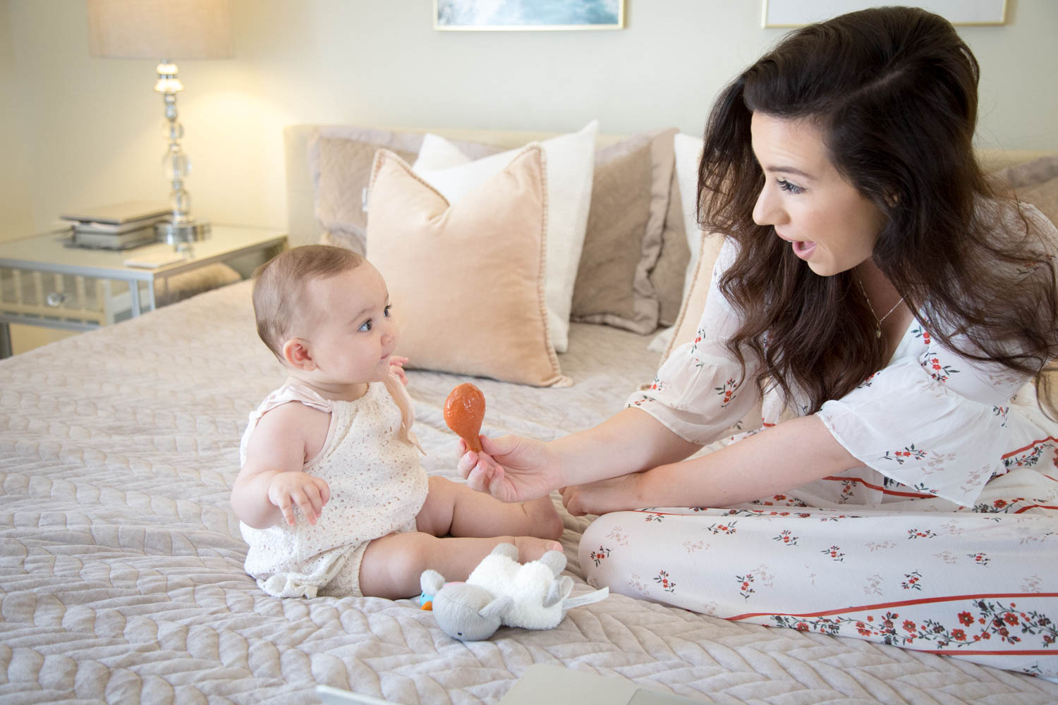 Life with a baby is pure craziness. I’ve been told countless times that the adjustment when you go from zero babies to one baby is harder than going from two to three or three to four! It totally makes sense too. Your life before baby was one of complete freedom. Freedom to come and go as you please. Not having to worry about nap time or feeding another human. Your body was completely yours and your boobs weren’t property to a tiny but demanding little human. I talked about the emotional journey into motherhood in this vlog, but in today’s post, I wanted to touch a little bit more on how motherhood changes you as a woman. Before I get into everything, can we just look at this baby? You guys, I’ve realized she HATES being photographed. How could I birth a baby who hates pictures!? I guess I just have to work with what I’ve got because you know I like to document everything;)Trying to distract her with a chicken wing… She’s sooo not at the stage where I can read to her lol I guess this is all she really wanted!