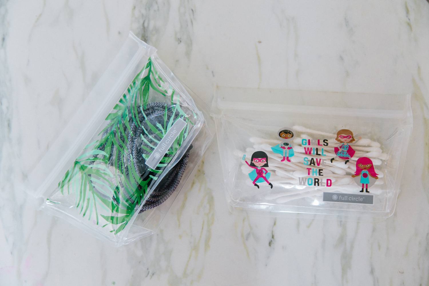 - Pack up leftover and prepare snacks for the next day’s outing. When I’m really on top of my Mom game, I’ll pack lunch and/or snacks for the next day’s park trip. Most days after breakfast we will go to the park, a play date, the library, or an indoor class and I always bring snacks! I store them in Full Circle’s Ziptucks, which are reusable snack bags that are perfect for on the go and come in a few different fun prints!