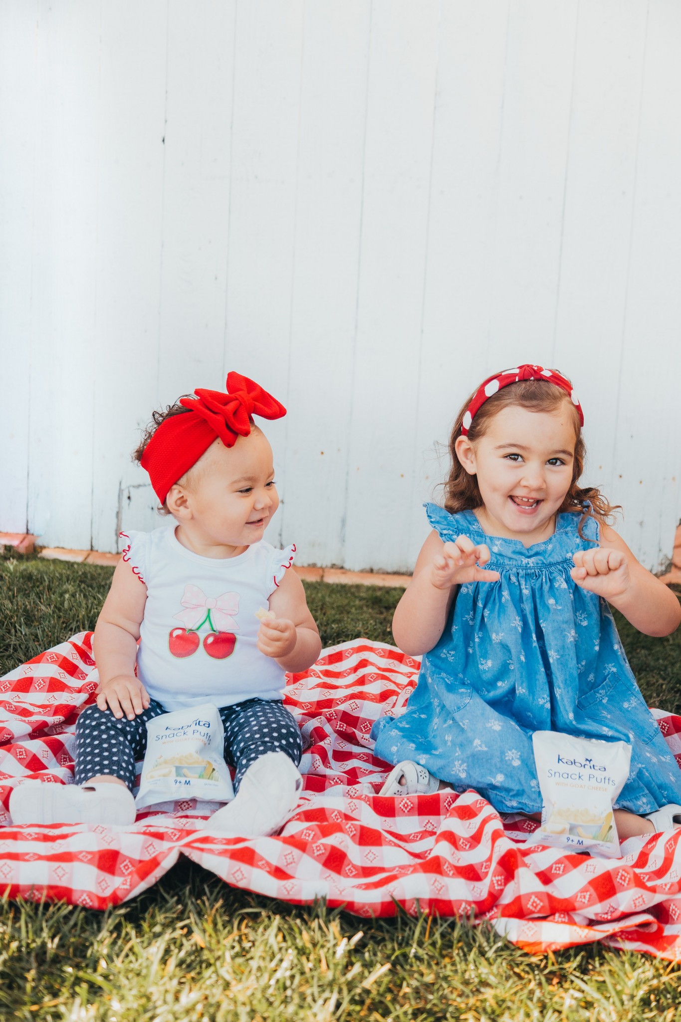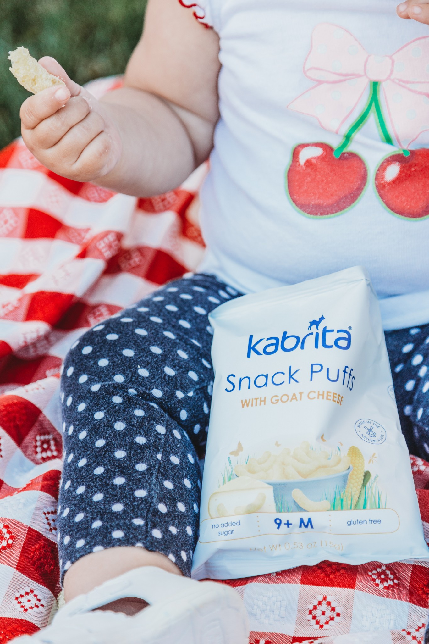 Annabelle’s joining in the middle of the school year, but I know it won’t be a big deal. It’s only two days a week for a couple of hours to introduce her to it all. A few ways we are preparing her for school is by getting her own backpack and lunchbox full of yummy snacks like these snack puffs with goat cheese from Kabrita. Kabrita has a ton of healthy, cow milk alternatives that are non-GMO and certified glyphosate free  like baby formula, porridge, and puff snacks! I feed these snacks to both my girls and they love them! I’ve noticed that Doug and I have a slight reaction when we consume cow milk, especially Doug as we believe it contributes to his cystic acne. Ever since cutting back we have noticed a huge difference in bloating and our overall health so we are trying to reduce it in all of our foods which is why we love this alternative in an easy on the go pack!