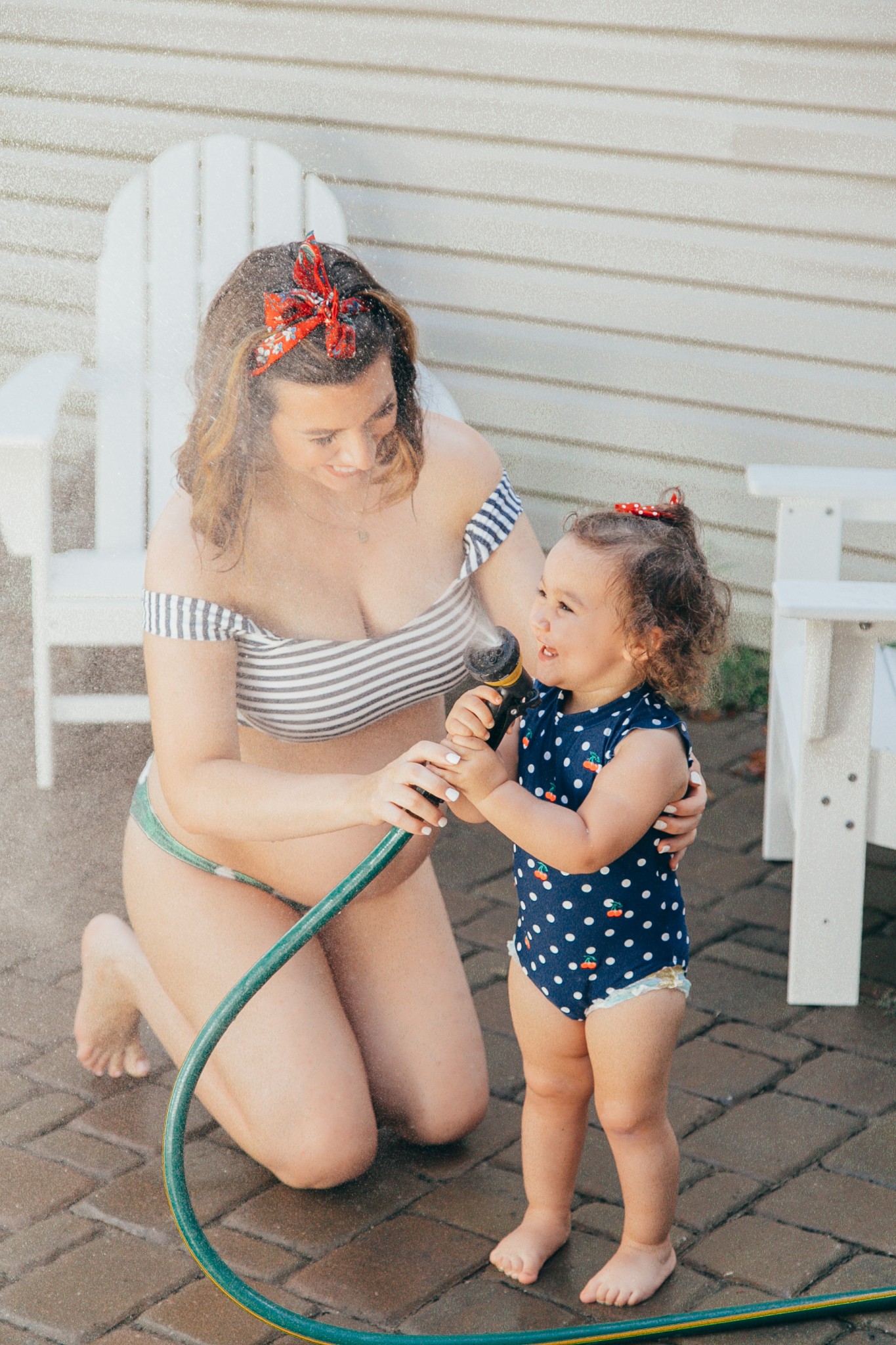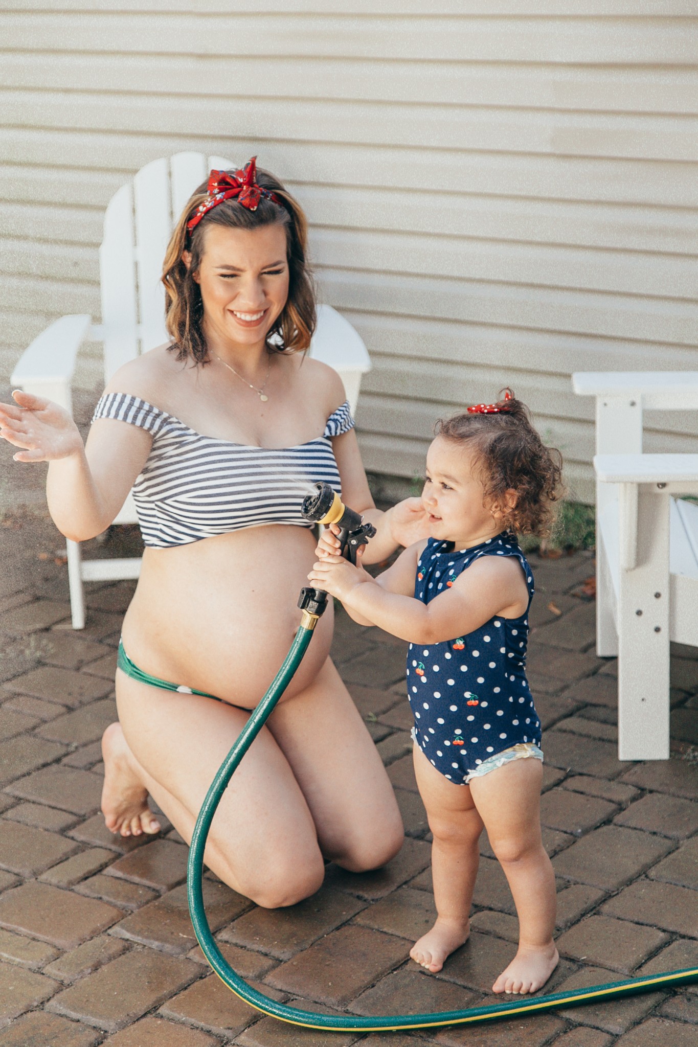 I hope that answers the burning question! haha I know so many of you are in the same boat so I wanted to address is. Also, how cute is A’s swimsuit!? It’s from Pink Blush (where I buy all of my maternity clothes – see here). They have the most precious pieces for toddlers and babies now!